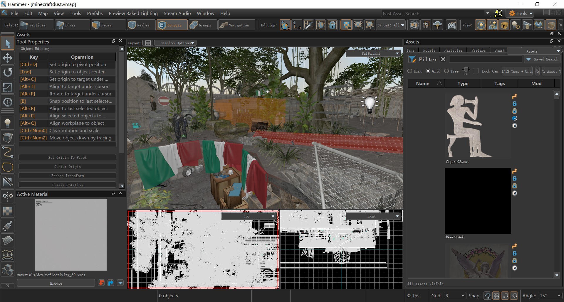 I created a map for the official CS:GO community using the Source engine, blending custom and official textures and models during the scene construction. I added climbable ladders, interactive revolving doors, various camera animations, and dynamic plant and flag effects. I also customized the lighting and used the official "CubeMap" reflection effect and "VIS" distance field.