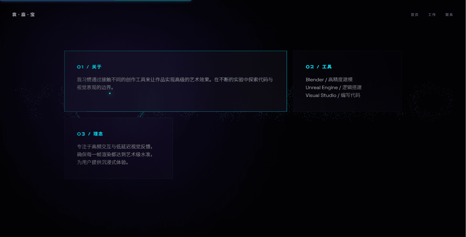 Designed and developed a "Glassmorphic" Bento-style UI focused on high-frequency interaction and immersive UX. Authored a custom Physics-based interaction system in JavaScript, including magnetic buttons and a mouse-repulsion particle field. Integrated Advanced CSS techniques (Mix-blend-modes, Radial Gradients, and Blur filters) to create a cinematic atmospheric aesthetic. Managed assets and typography via Google Fonts API and custom vector-based particle rendering.